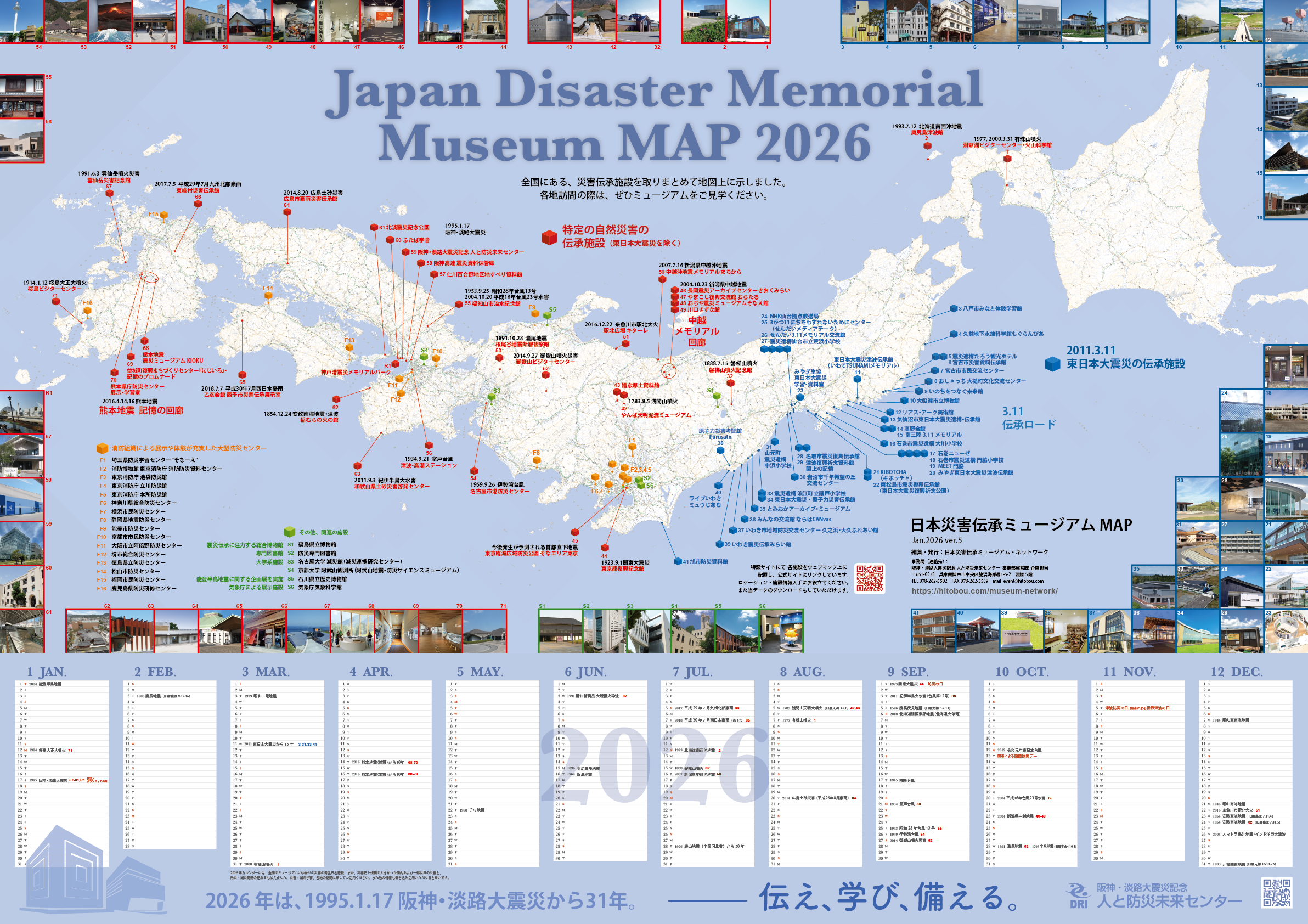 人と防災未来センターが、今年1月に発行した最新の「日本災害伝承ミュージアムマップ」を掲示します。合わせて各地の3.11ミュージアムの施設パンフレット類を配架します。