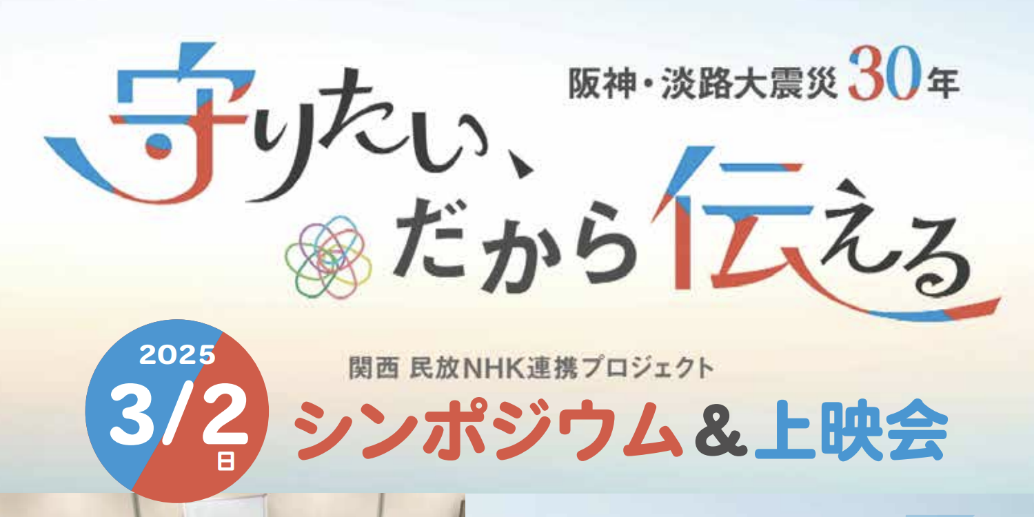 2025.3.26 お知らせ 災害伝承”語り継ぎ”探究サロン 第10回「阪神・淡路大震災30年の機に生まれた2つの絵本」ご案内 開催日 2025.4.6(日) 13:00 2025.2.21 イベント 【終了しました】シンポジウム&上映会「阪神・淡路大震災30年 関西民放NHK連携プロジェクト 〜守りたい、だから 伝える〜」の開催 開催日 2025.3.2(日) 2025.2.6 お知らせ 阪神・淡路大震記念 人と防災未来センター 広告出展者募集のご案内 2025.1.18 お知らせ 「防災100年えほんプロジェクト 第3回 防災100年ものがたり」入選作品の決定について 2024.9.23 お知らせ 阪神・淡路大震災記念 人と防災未来センター 来館者1000万人達成について 2024.9.2 お知らせ 第1回「NIPPON防災資産」に優良認定されました «<1・・・34>»